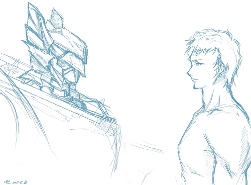 ・・タダの練習にと思って描いたら、なんか対比したくなっちゃって・・・止めればいいのに、自分には描けないメカに挑戦。しちゃった。ハァ~