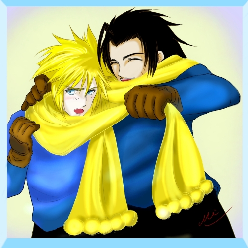 「ほら!クラウド!これで俺たちお揃いだぜ♪ あったかいだろ?」