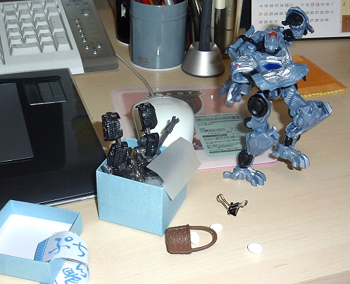 ちなみに、箱の中に「犬神家の一族」的になってるTFは、親友が忘れて行ってくれた「メガトロン」